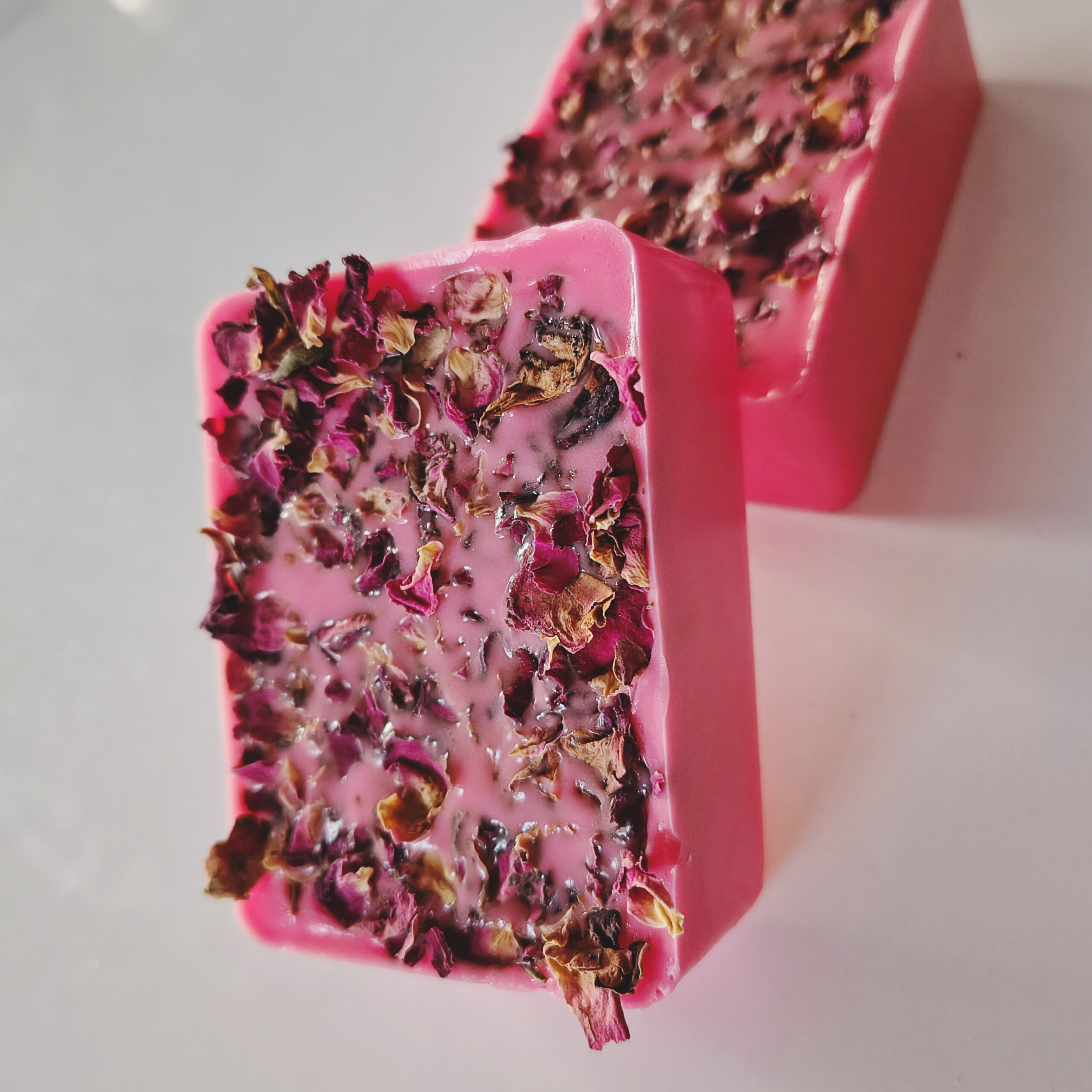 Mydło glicerynowe , bez SLS-u, wykonane ręcznie o zapachu róży z płatkami susoznych kwiatków róży